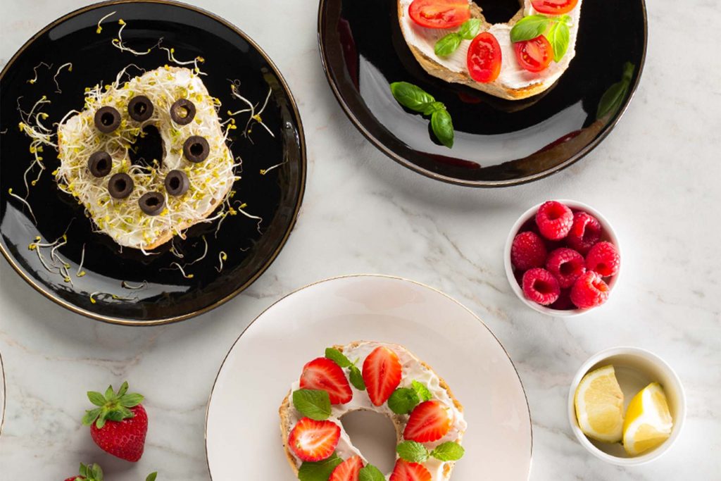Na serek połóż dodatki. Zainspiruj się naszymi propozycjami: – bajgiel z serkiem, ogórkiem, malinami i kiełkami rzodkiewki, brokułu lub słonecznika – bajgiel z serkiem, łososiem i kiełkami lucerny – bajgiel z serkiem, truskawkami i świeżą miętą – bajgiel z serkiem, pomidorkami i świeżą bazylią – bajgiel z serkiem, bazylią i oliwkami – bajgiel z serkiem, kiełkami lucerny i oliwkami