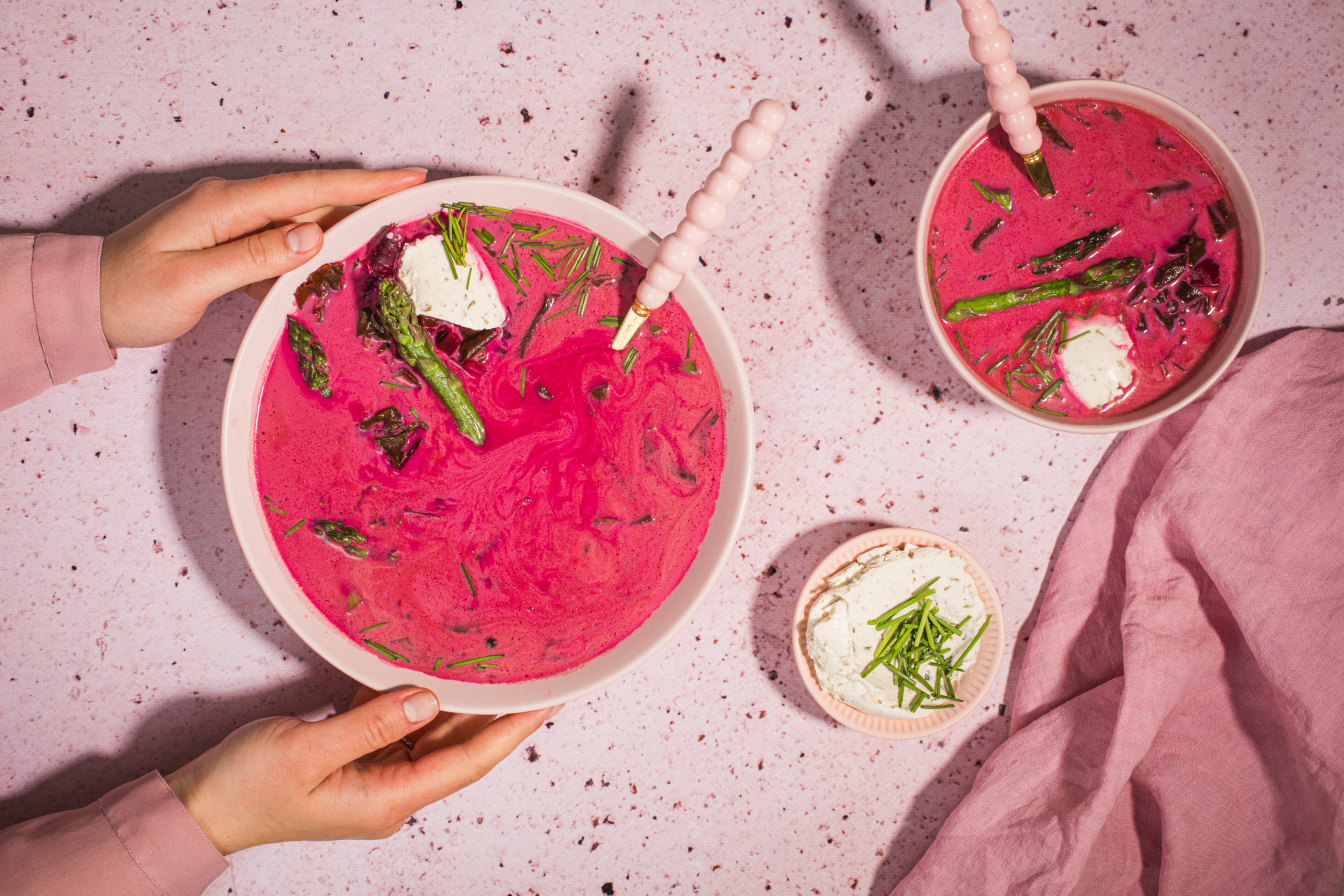 Buraczki obierz i pokrój w cienkie plasterki lub kostkę. Liście i łodyżki botwinki dokładnie opłucz i posiekaj.