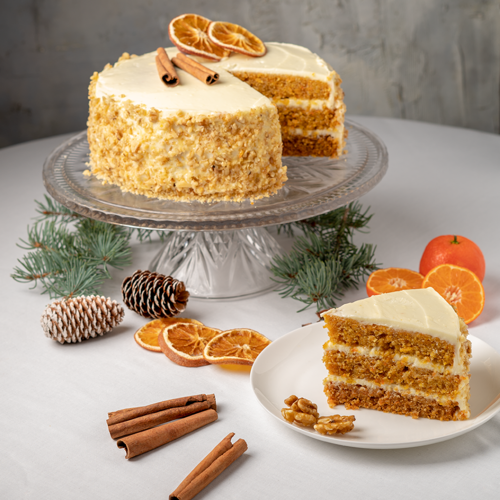 Udekoruj wierzch korą cynamonu i suszonymi pomarańczami.