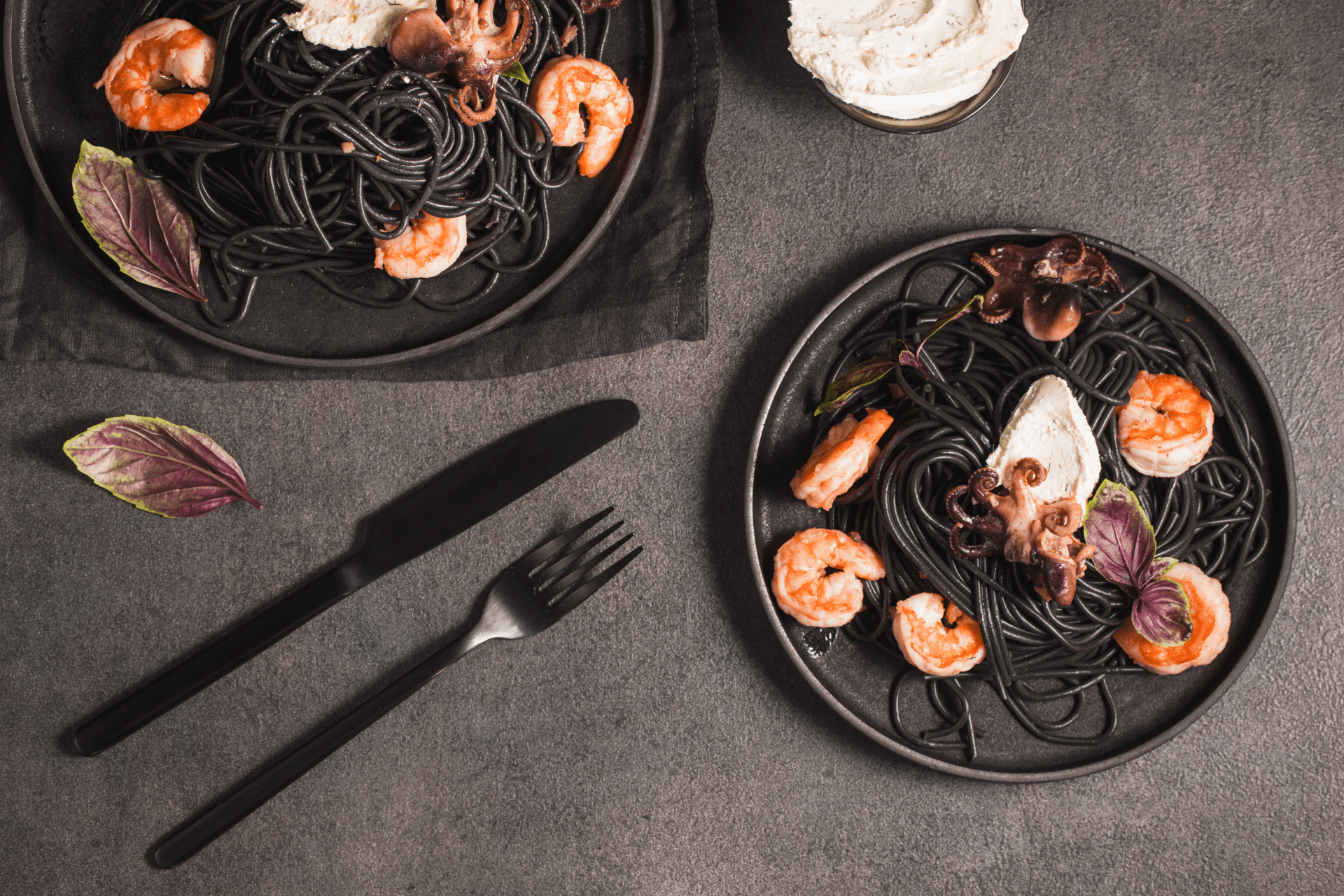 • 180 g czarnego makaronu (np. spaghetti z sepią)