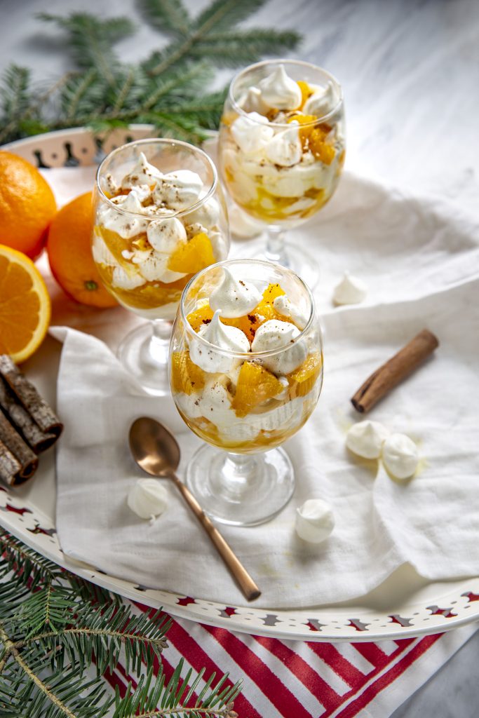 Przygotuj trzy szklanki lub szklane miseczki. Rozkrusz kilka bezików. Nakładaj deser do przygotowanych naczyń warstwami: krem z Philadelphią, pomarańczę w syropie i pokruszone beziki. Wierzch udekoruj całymi bezami i posyp mielonym cynamonem.