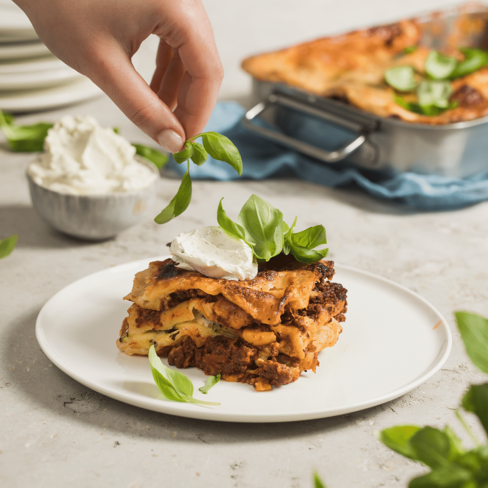 Powtórz warstwy 3 razy i wstaw formę do piekarnika na około 45 minut. W połowie pieczenia przykryj lasagne folią aluminiową. Po upieczeniu odstaw na około 7 minut i porcjuj na prostokątne kawałki.