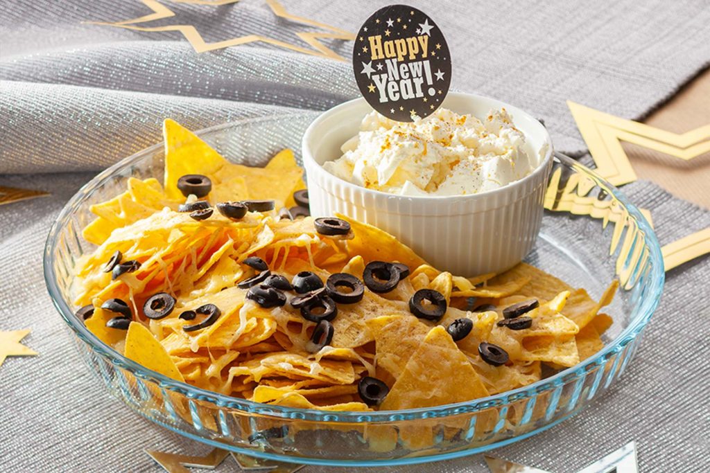 1. Nachosy wysyp warstwami do żaroodpornego naczynia. Warstwy przekładaj utartym serem i pokrojonymi oliwkami. Piecz w piekarniku przez 10 minut, w temperaturze 180 stopni C.