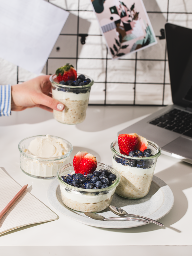 Przełóż owsiankę do miseczek i wstaw je do lodówki na całą noc.