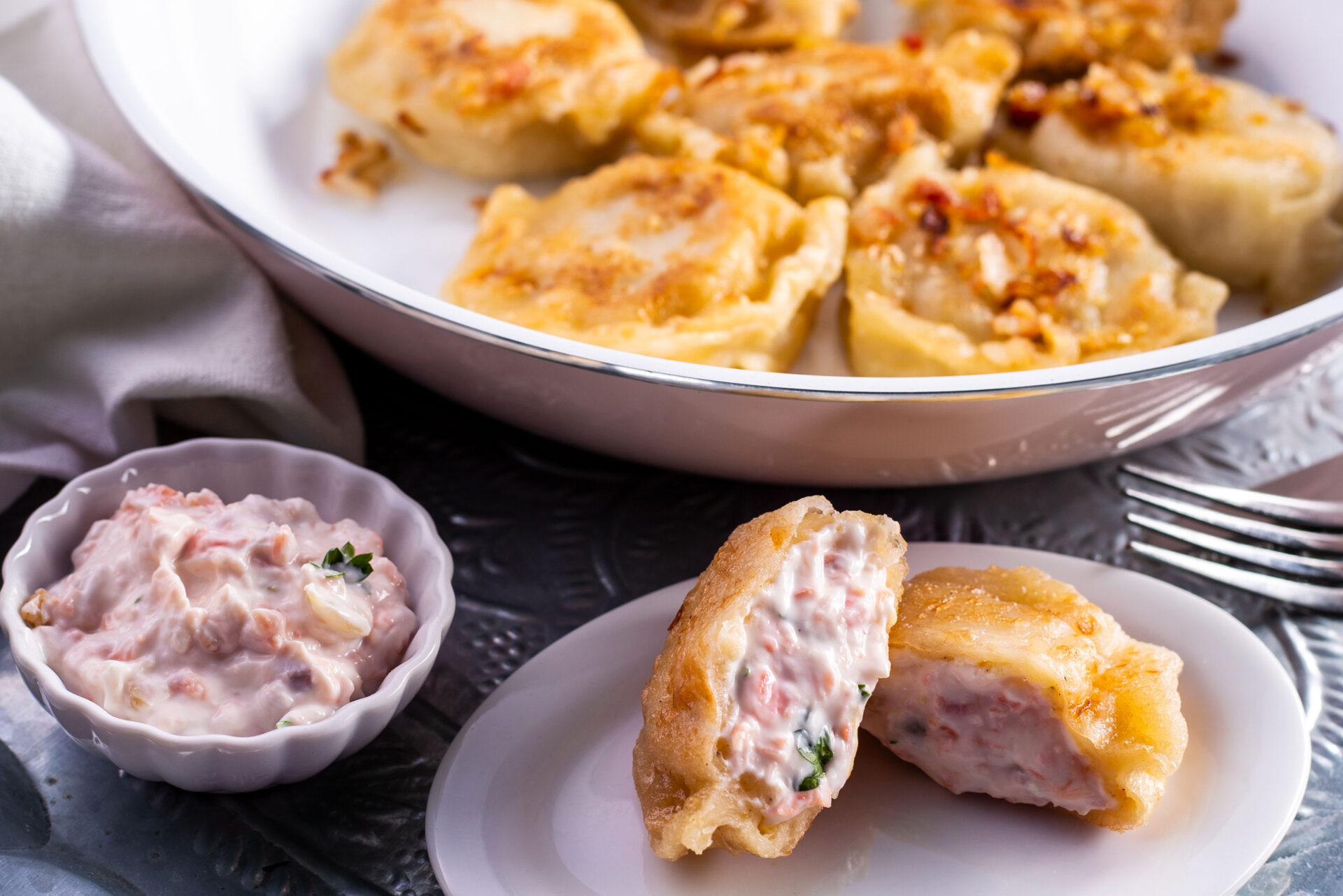 Ugotowane uprzednio i wystudzone już pierogi możesz usmażyć na patelni na dużej ilości tłuszczu.