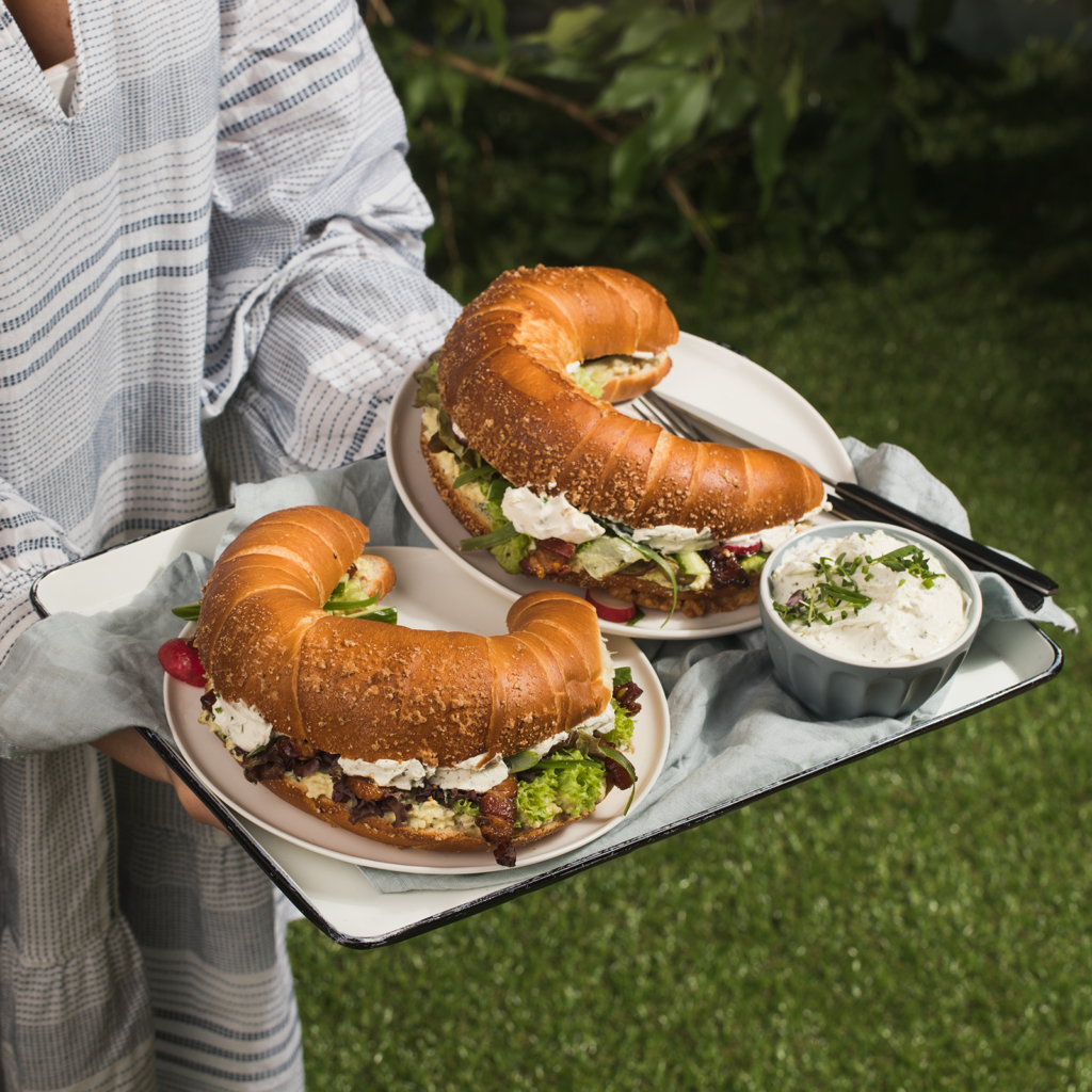 Rogal maślany ze śmietankową pastą jajeczną i miodowym boczkiem