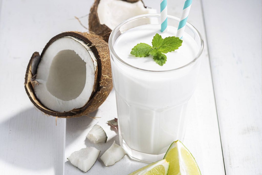 Serek wymieszaj z sokiem z limonek. Dodaj syrop z agawy, mleko kokosowe, wodę i wymieszaj.