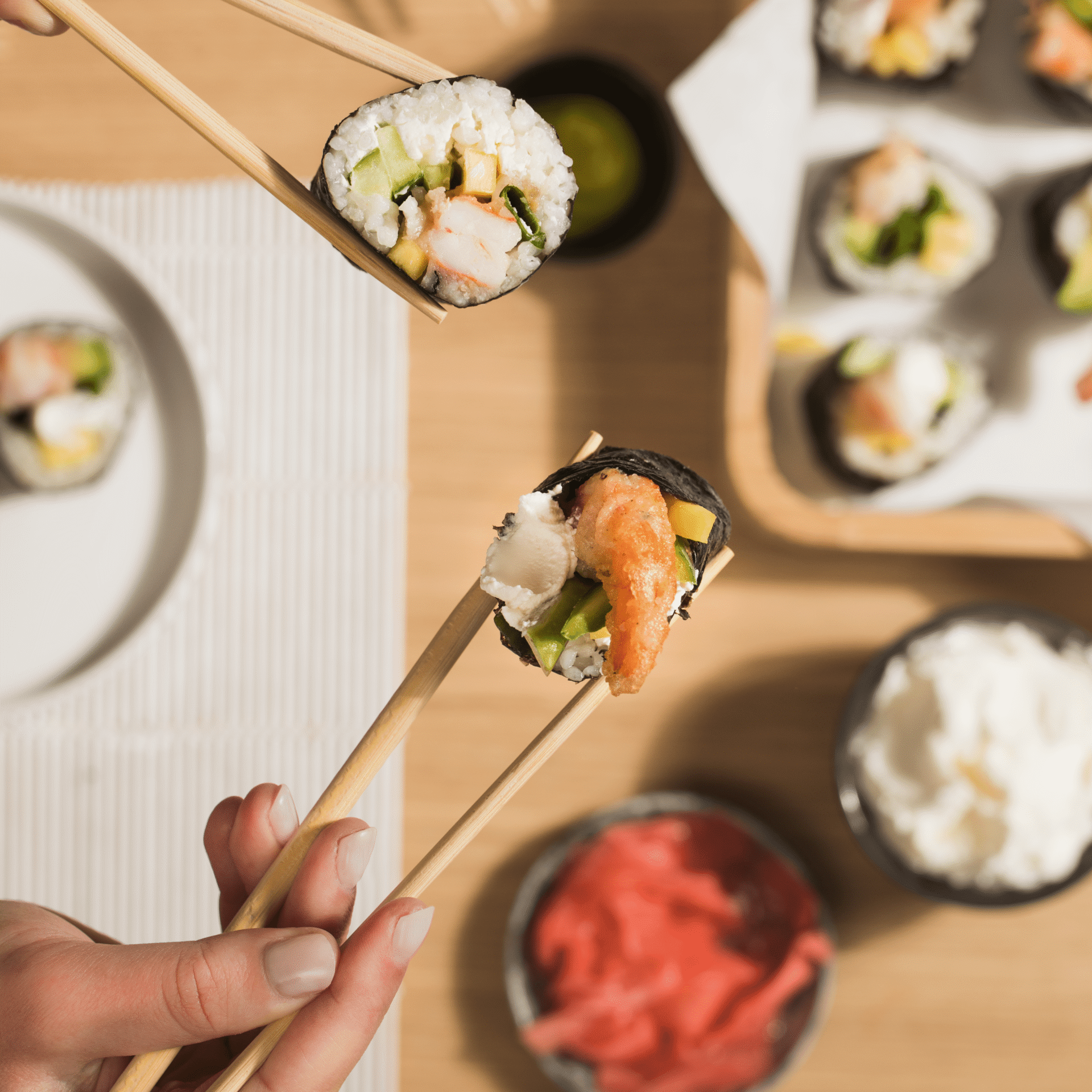 Pokrój rolki na kawałki. Serwuj z marynowanym imbirem, sosem sojowym i wasabi.