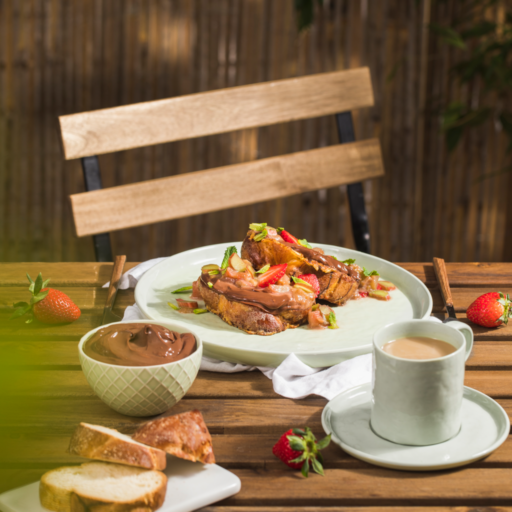 Tost francuski z czekoladowym serkiem i rabarbarem