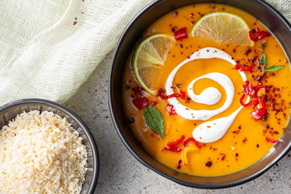 Podawaj z kleksami serka Philadelphia, miętą i plastrami limonki. Jeśli lubisz, dodaj kawałki ostrej papryczki i świeżo zmielony pieprz.